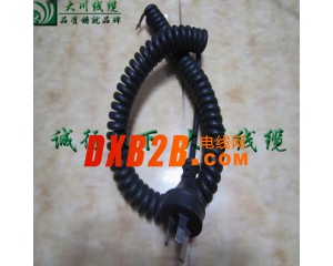 彈簧線(又叫彈弓線、電話線、螺旋線、卷線、伸縮線、曲線),按材質可分:PU彈簧線、PVC彈簧線、PE彈簧線,產品大致可分為插頭彈簧線、塑膠彈簧線、編制屏蔽彈簧線、點煙器彈簧線、DC頭彈簧線等,彈簧線是一種利用可伸縮性來工作的設備連接線。一般用TPU電纜繞制而成。用以控制可移動設備運動的電連接、可在短時間內迅速回彈,一般是由TPR/TPU/TPE/ PVC電纜繞制而成。而采用最多的是PU/TPU,PU/TPU是熱塑性聚氨酯( TPU )彈性體 ,是無毒環保的高分子聚合物,具有其它塑料材料所無法比擬的強度高﹑韌性好﹑耐磨﹑耐寒﹑耐高溫、耐油﹑耐水﹑耐老化﹑耐氣候等特性 ,同時他具有高防水性透濕性﹑防風﹑防寒﹑抗菌﹑防霉﹑保暖﹑抗微生物、環保型柔性電纜、抗紫外線以及能量釋放等許多優異的功能;它的硬度范圍 50a-82D ,用傳統的熱塑性塑料的加工方法,如注塑,擠出,壓延,吹塑, 熔鑄成型法等,均可方便地加工該產品。