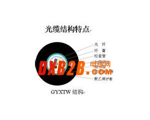 GYXTW光纜的結構是將單模或多模光纖套入由高模量的聚脂材料做成的松套管中,套管內充防水化合物。松套管外用一層雙面涂塑鋼縱包。鋼帶和松套管之間加水材料以保證光纜的緊湊和縱向阻水,兩側放置兩根平行鋼絲后聚乙烯(PE)護套成纜。