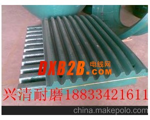 鄂板既是鄂式破碎機的主要部件:動鄂板:靜鄂板:根據鄂式破碎機型號的不同,有多種型號尺寸,興清耐磨材料有限公司:鄂板采用高錳鋼和(高鉻合金)材質,適用各種規格顎式破碎機顎板:鄂式破碎機是由動鄂和定鄂構成的工作腔組成,動鄂和定鄂承受巨大的破碎力和物料的摩擦作用,容易磨壞,為了保護鄂板,一般在動鄂和定鄂的表面安裝耐磨的襯板,這種襯板又稱為破碎板。破碎板的表面通常做成齒形,破碎板齒峰的角度為90°120°,其大小由被破碎物料的性質和塊度而定,破碎大塊物料時,角度要大些;破碎小塊物料時,角度可小些。齒距的大小取決于產品的粒度,通常取約等于出料口的寬度,齒高與齒距之比可取為1/ 21/ 3     工作時,破碎板上下兩部分磨損的速度是不一樣的,下部比上部磨損得快些,破碎板在鄂式破碎機工作時,直接與物料接觸,承受巨大的破碎力和物料的摩擦作用,破碎板的使用壽命直接關系到鄂式破碎機的工作效率和生產成本,因此,延長鄂式破碎機的破碎板的使用壽命就顯得尤為重要。