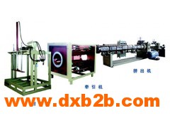 擠出機、機頭、冷卻水槽、牽引機、切割機、卡管機、支架及電氣控制部分等組成。機頭,模具主體¢125 ¢250 ¢420 ¢760﹙冷卻水套加熱圈,耐高溫聚四氟墊﹚