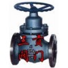 柱塞閥是由閥體、閥蓋、閥桿、柱塞、孔架、密封環、手輪等零件組成。當手輪旋轉,通過閥桿帶動柱塞在孔架中間上下往復運動來完成閥門的開啟與關閉功能。在閥門中柱塞與密封環間采用過盈配合,通過調節壓蓋中法蘭螺栓,使密封環壓縮所產生的側向力與閥體中孔面及柱塞外圓密封,從而保證了閥門的密封性,杜絕了內外泄漏、同時閥門開啟力矩小,能實現閥門迅速開啟和關閉。柱塞閥的關閉由一個不銹鋼柱塞、上下兩只富彈性密封圈及一個金屬隔框組成,密封效果由柱塞與密封圈緊密配合來達到,柱塞插在兩只密封圈中,密封面積遠大于普通截止閥;開關柱塞閥時,柱塞在密封圈中緩慢移動,接觸面幾乎不磨損,關閉時,柱塞插入下密封圈,截斷流道;開啟時,柱塞雖然脫離下密封圈,但仍藏在上密封圈內,保持與外界隔離,不致發生泄漏。 |