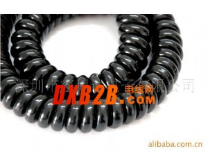 彈弓線(又叫彈簧線,螺旋線,伸縮線,曲線)是一種利用可伸縮性來工作的連接線。一般是由TPR/TPU/TPE/ PVC電纜繞制而成。而采用最多的是PU/TPU,PU/TPU是熱塑性聚氨酯( TPU )彈性體,是無毒環保的高分子聚合物,具有其它塑料材料所無法比擬的強度高﹑韌性好﹑耐磨﹑耐寒﹑耐高溫、耐油﹑耐水﹑耐老化﹑耐氣候等特性,同時他具有高防水性透濕性﹑防風﹑防寒﹑抗菌﹑防霉﹑保暖﹑抗微生物、環保型柔性電纜、抗紫外線以及能量釋放等許多優異的功能;它的硬度范圍 50 a-82D ,用傳統的熱塑性塑料的加工方法,如注塑,擠出,壓延,吹塑, 熔鑄成型法等,均可方便地加工該產品。